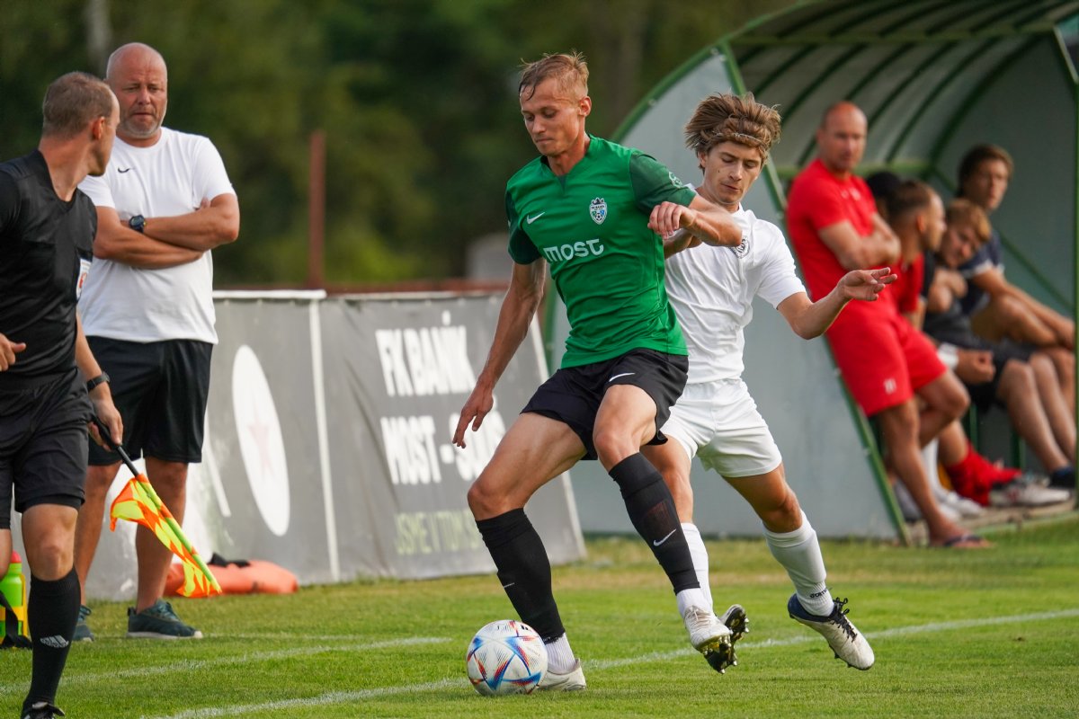 Ve druhém dějství se bohužel průběh otočil. Takřka z první a ojedinělé akce dokázal Chomutov snížit na 1:2 a po chybné rozehrávce mostecké obrany mohl vzápětí Patrik Gedeon v jasné šanci dokonce srovnat skóre. Michal Patka v naší brance však byl proti a odvážným skokem pod nohy velkou šanci zlikvidoval. Most se po nevydařeném vstupu přeci jen zkonsolidoval a vrátil se ke kombinační hře, která se dařila přes další letní posilu Adina Jacobovici ve střední záloze. Po jednom z míčů za obranu se v jasné šanci a samostatném úniku ocitl Jan Skurovec a dokázal svou šanci chladnokrevně proměnit a navýšit skóre na 3:1.