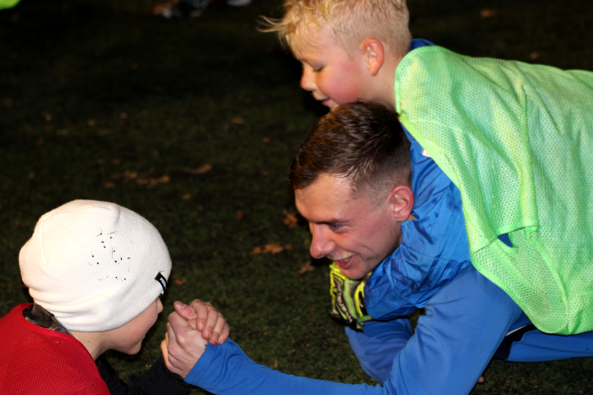 Nadšené kluky si rozdělili a pustili se s nimi do fotbálku. Ani jeden tým nechtěl prohrát, malí fotbalisté bojovali o každý balón a zkušené posily z A‑týmu jim míče rozdávaly. Do posledních minut se oba týmy rvali o vítězství. Ani poslední únik Ondřeje Podzimka, který chtěl urvat výhru, nestačil, branku Saši Lály minul, a tak zápas skončil zaslouženou remízou 5:5.