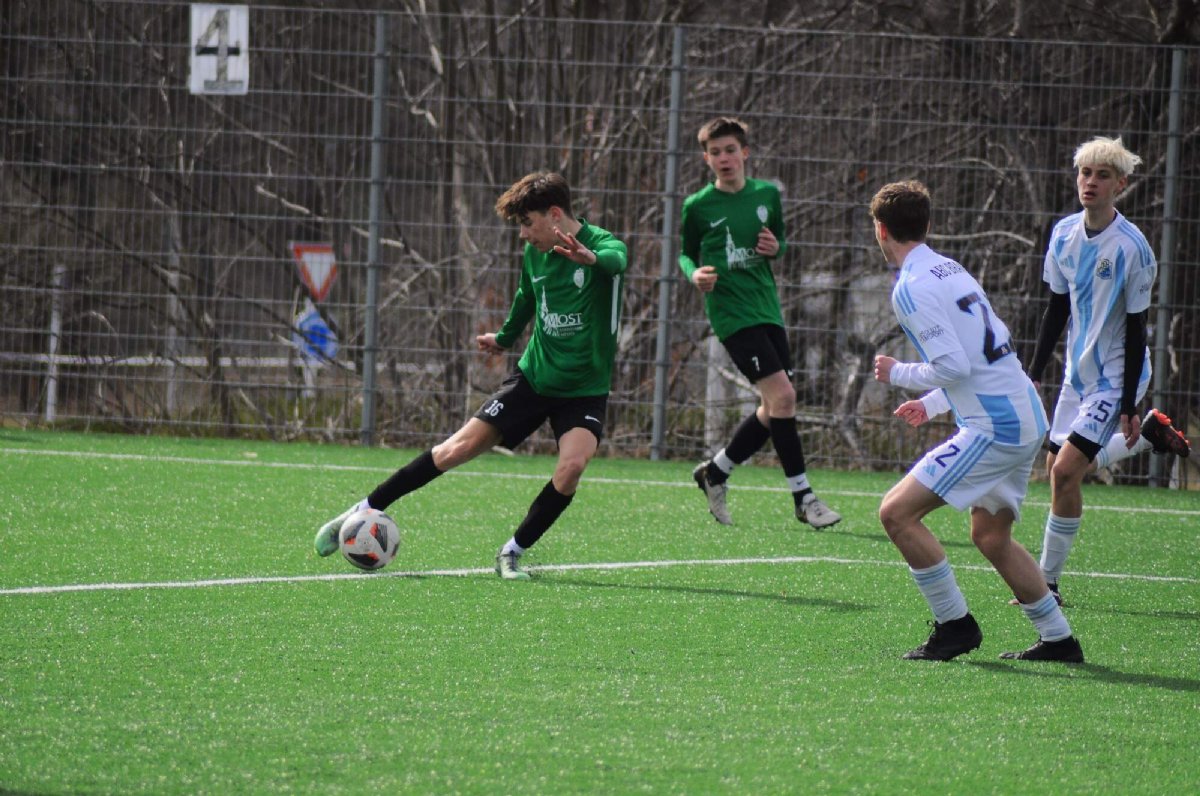 U15 museli zvládnout další těžké utkání s kvalitním soupeřem, od 9. minuty navíc prohrávali 0:1. Po půlhodině hry dokázal vyrovnat Pacák. Odpor soupeře zlomil v druhém poločase střídající Vaňous povedenou střelou zpoza vápna. Mostečané dokázali přidat ještě dvě branky a nakonec zvítězili 4:1. "Jsem velmi rád za kluky, že utkání zvládli. Myslím, že Braník má svou kvalitu, kterou nám ukázal. I po brzkém inkasovaném gólu jsme nic nevzdali a převzali jsme po nějakých 20 minutách iniciativu hry. Byli jsme pak, dle mého názoru lepší, a zaslouženě vyrovnali. V druhém poločase jsme vytrvali a po prostřídání jsme dokázali zvrátit utkání na naší stranu. Kluci mi udělali dnes radost, podali dnes týmový výkon a to se týká všech hráčů, kteří do zápasu zasáhli," pochválil své svěřence po utkání trenér U15 Michal Nguyen. U15 drží tříbodový náskok v tabulce před druhou Viktorkou Žižkov.